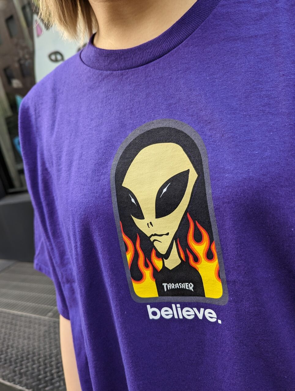 エイリアンが着てる服、スラッシャーやねんで。おしゃれやん。