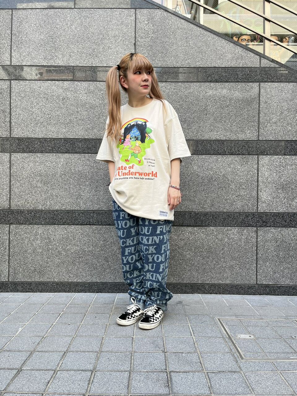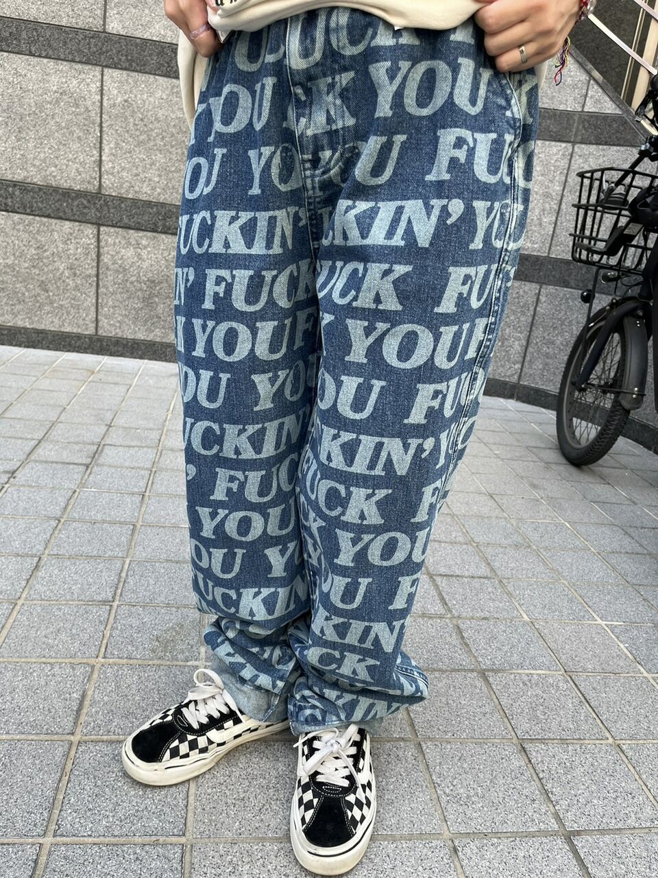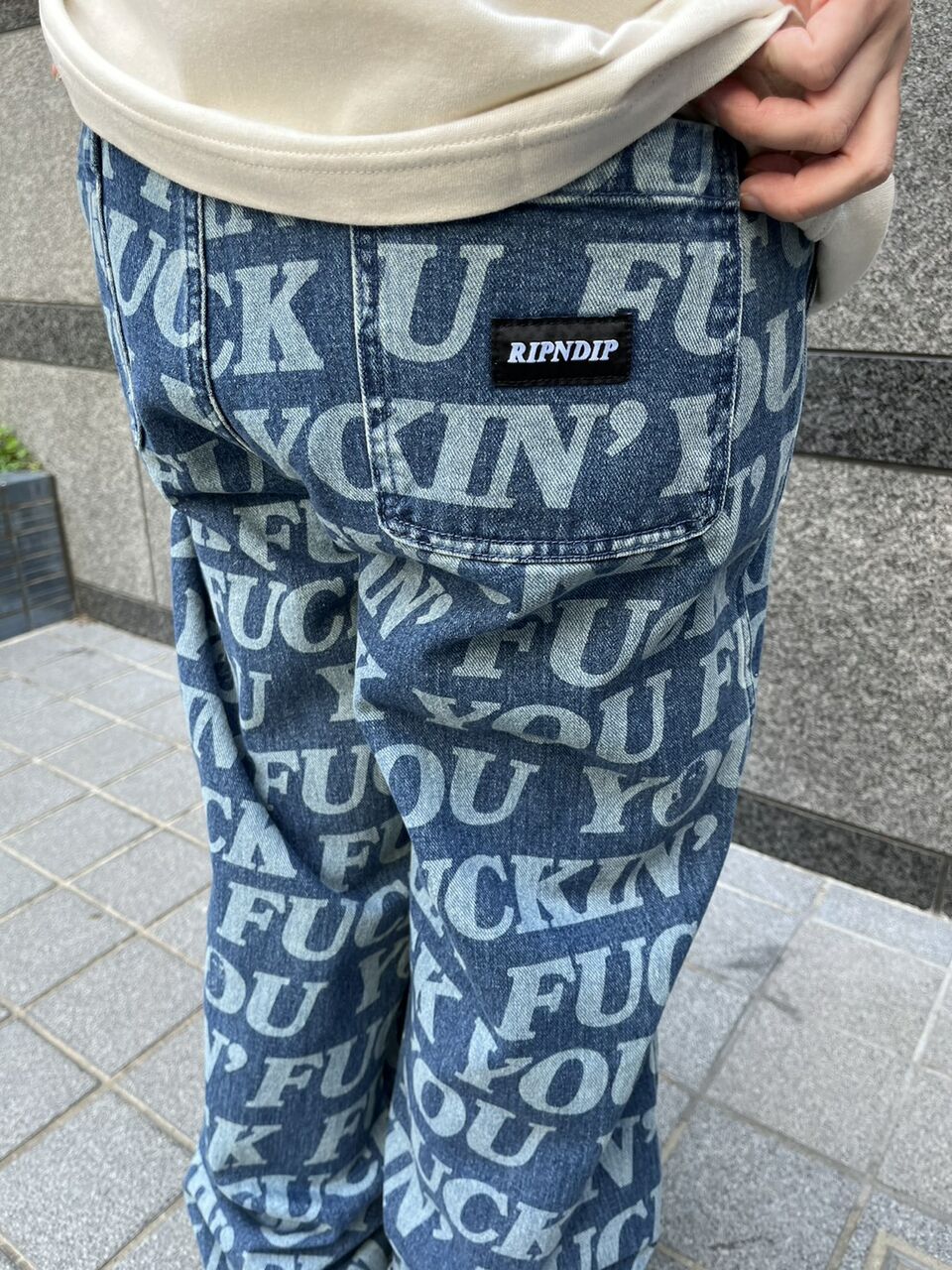 合わせたボトムはRIPNDIP(リップンディップ)の総柄デニム