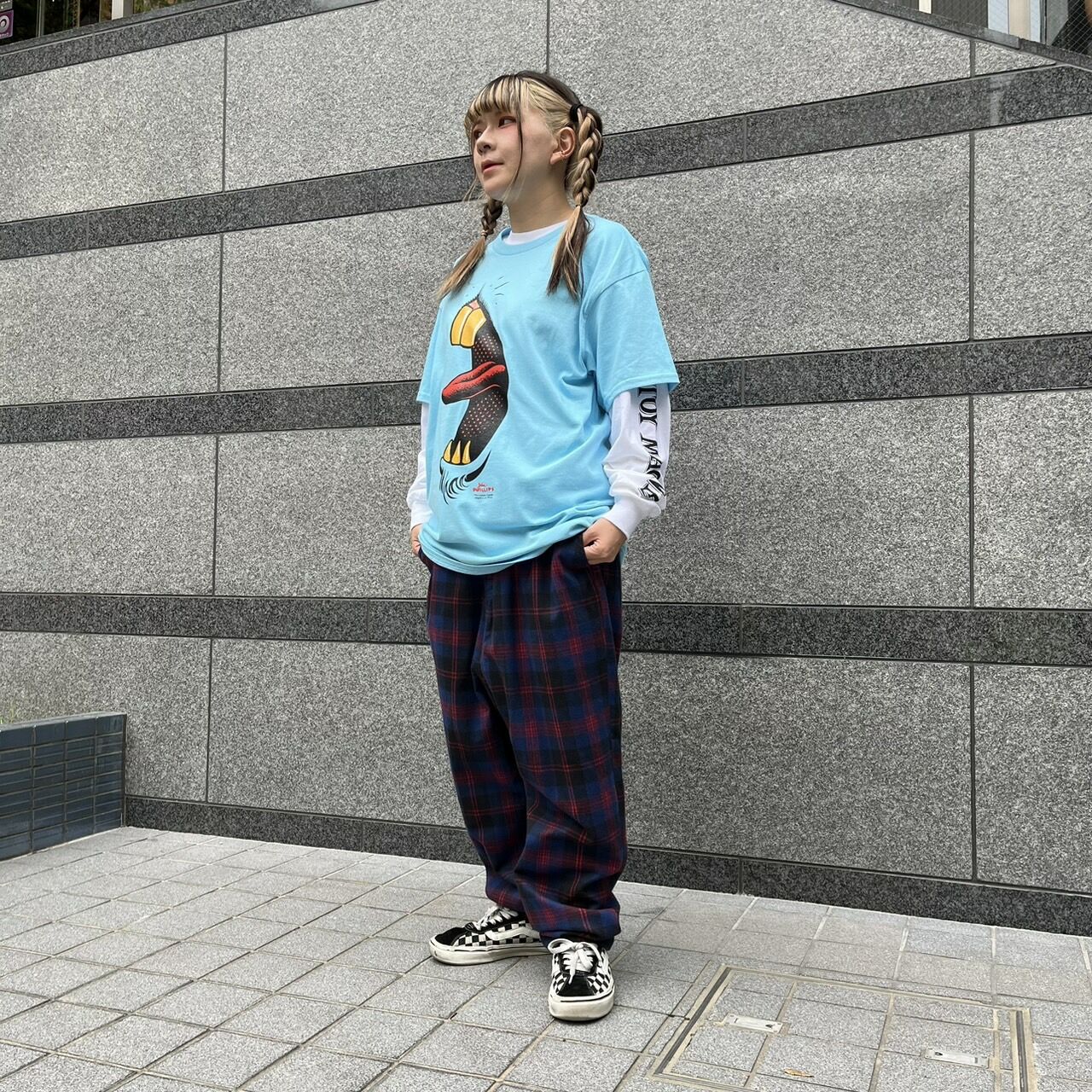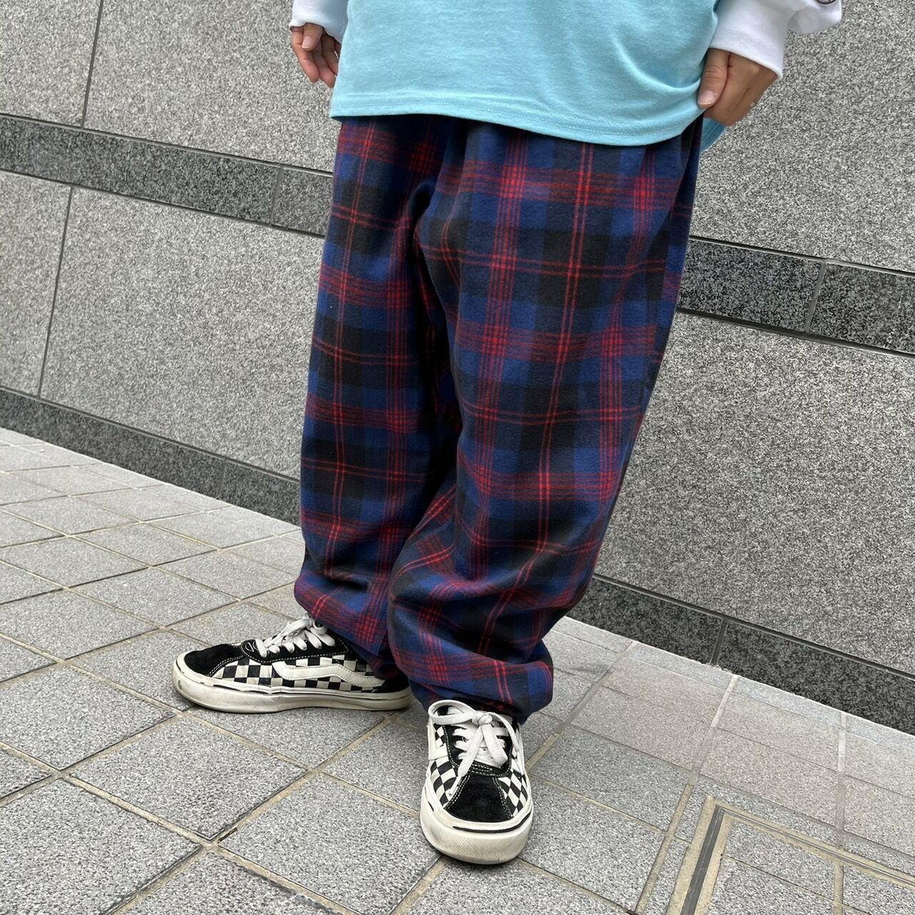 ボトムはHEADGOONIE(ヘッドグーニー)のタータンチェックパンツ!