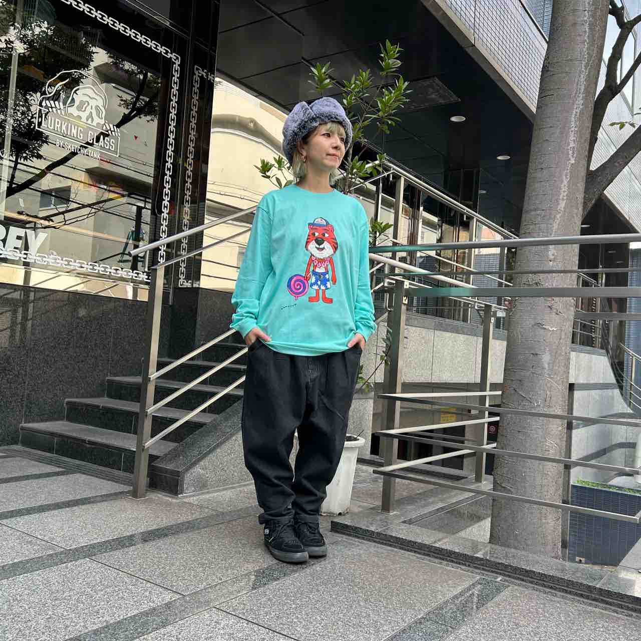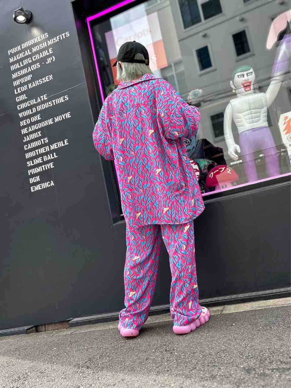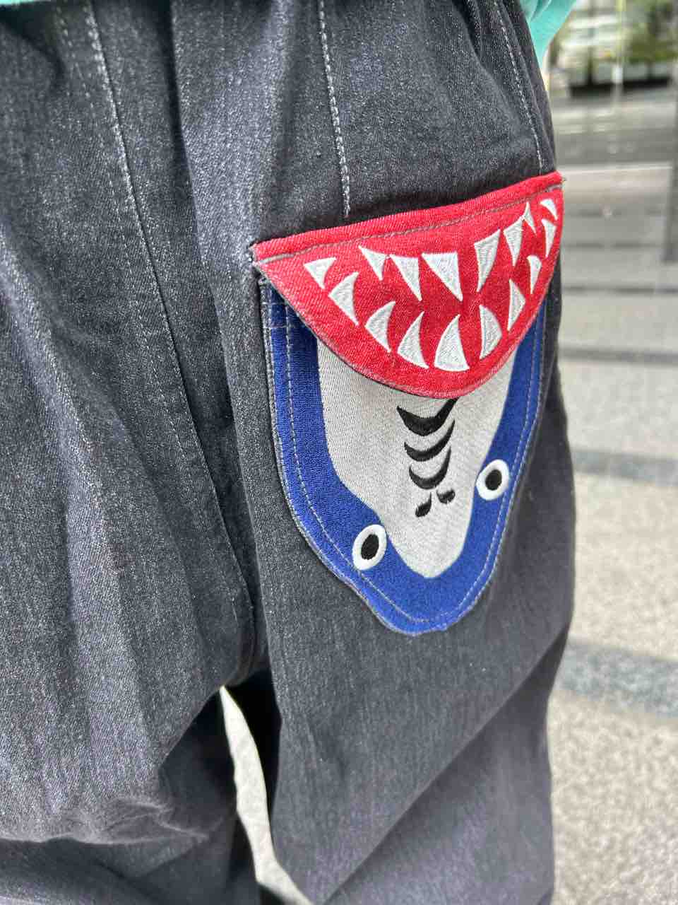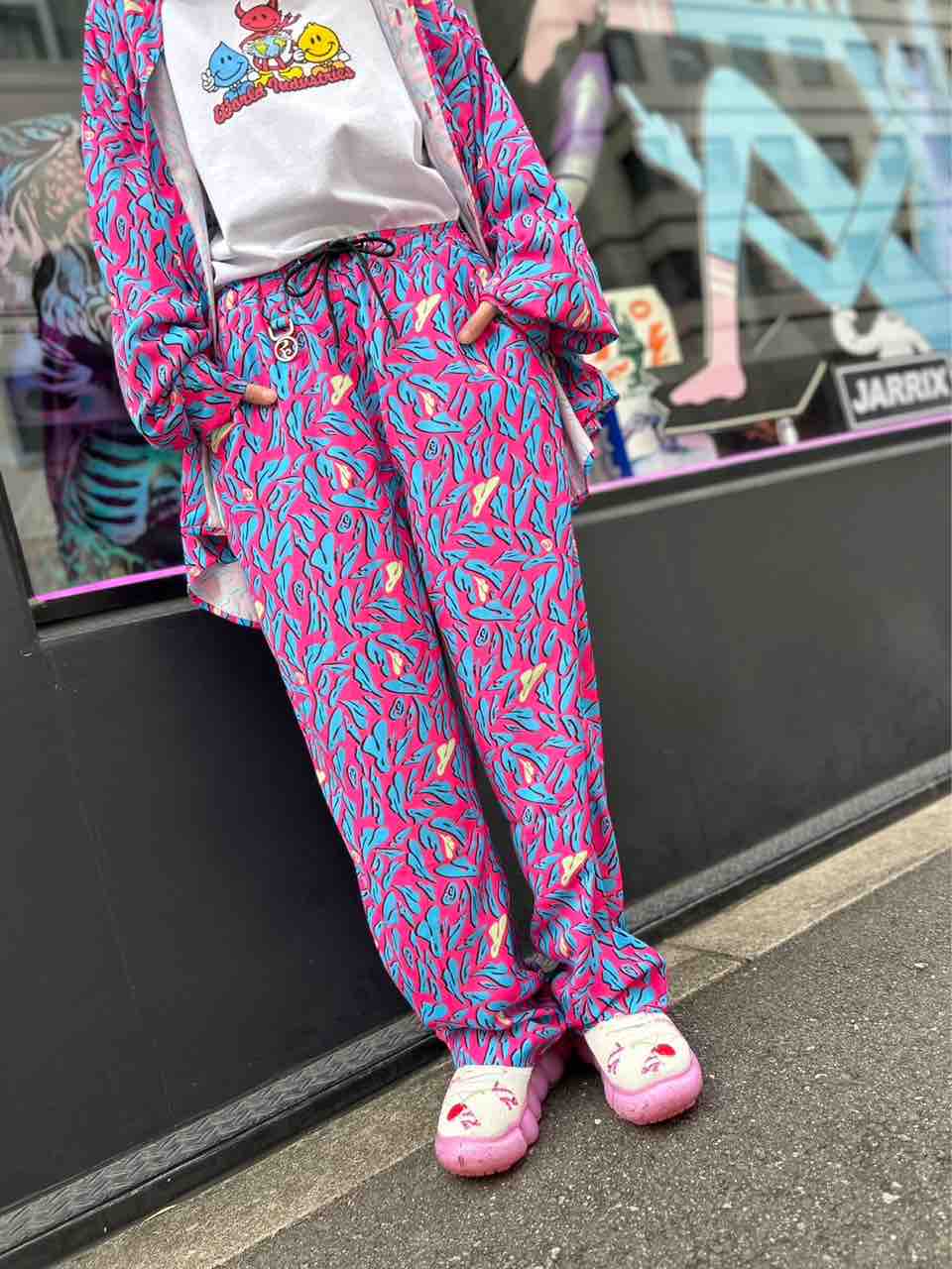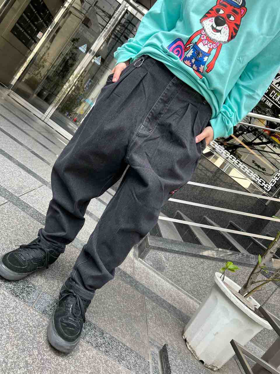 合わせたパンツはPUNK DRUNKERS(パンクドランカーズ)鮫人テーパードパンツ🦈