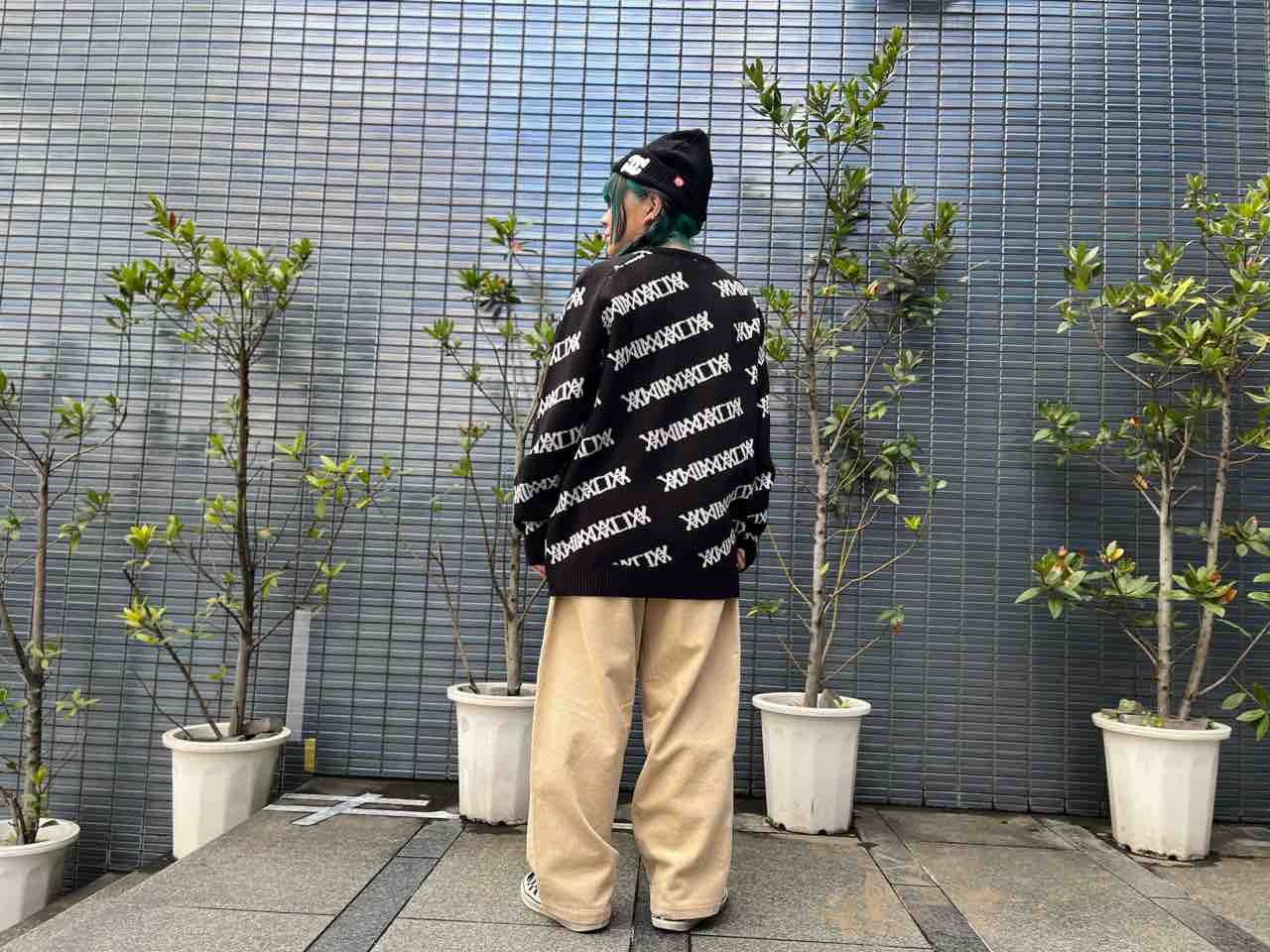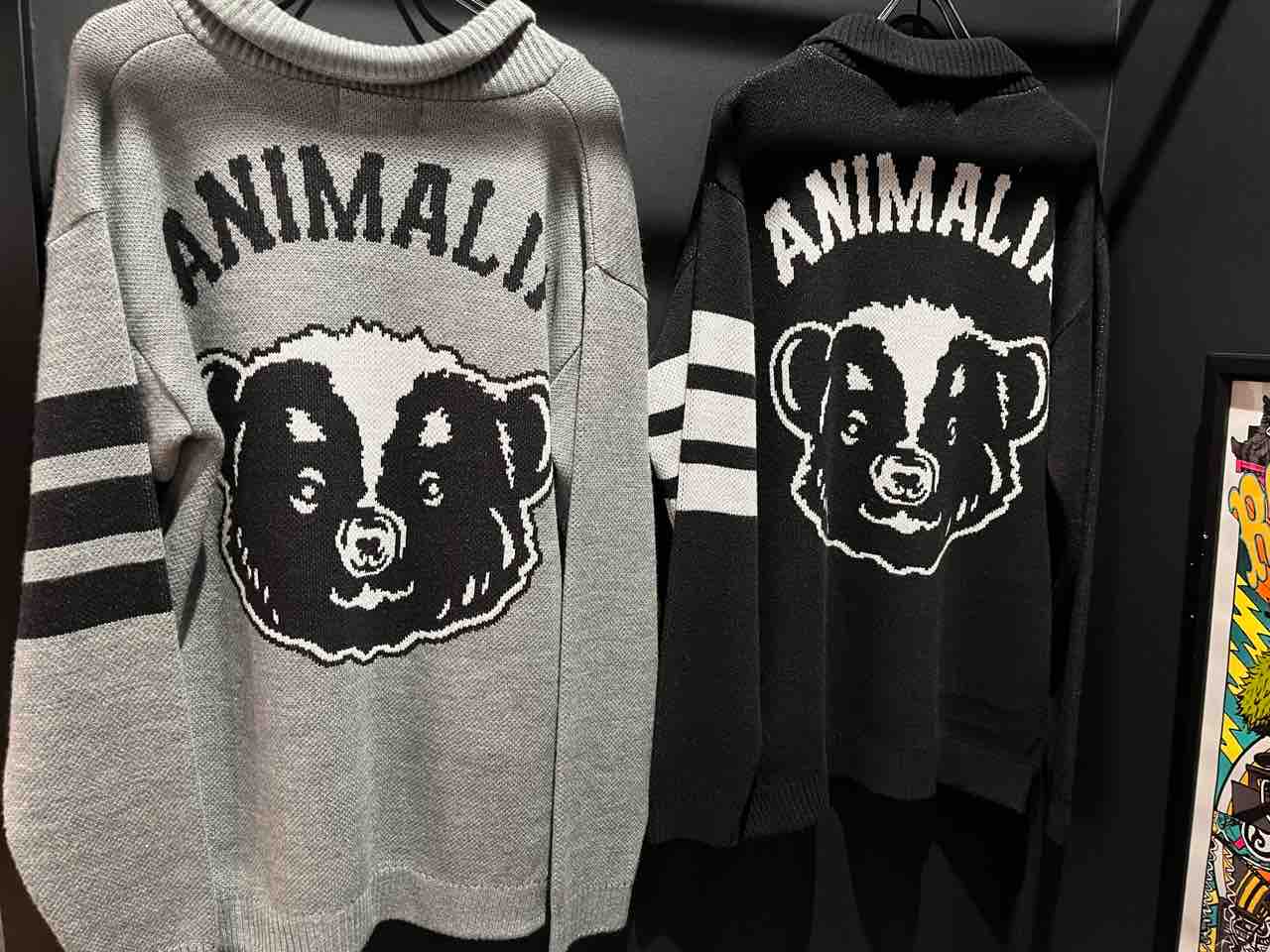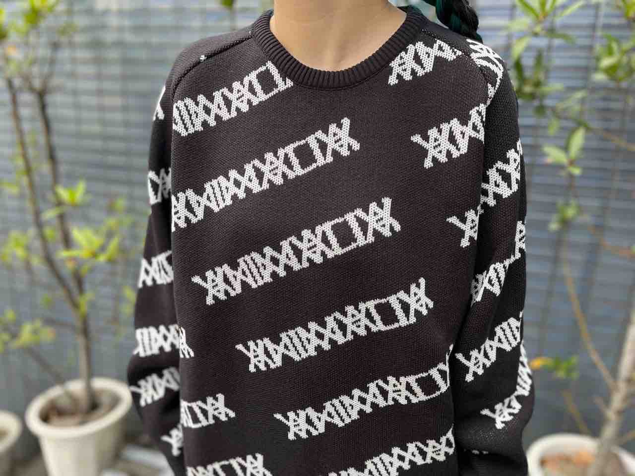 アニマリアのロゴがニット全体に、斜めに