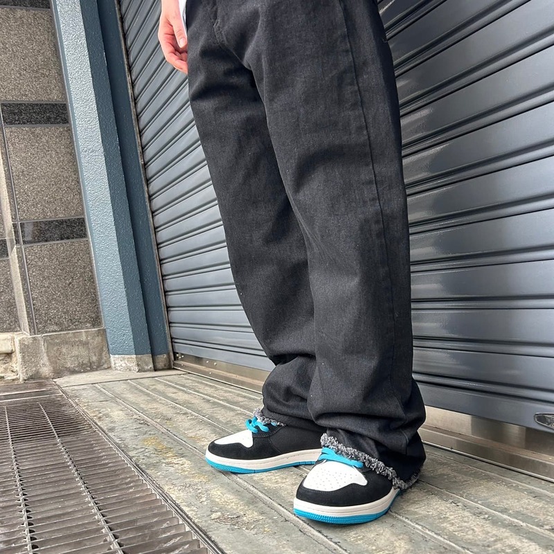 生地はデニム素材でしっかりとしてて、裾は切りっぱでかっちょいい✂️