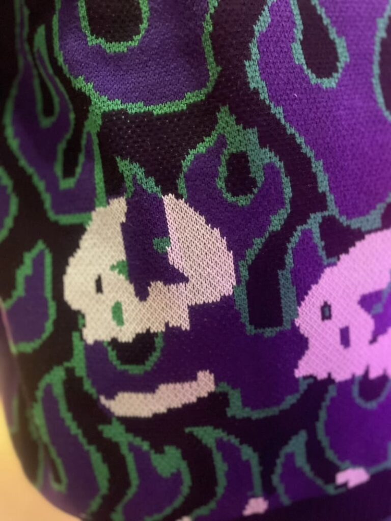 “MxMxMドクロ”がひょっこり顔を出す刺繍付き🧶