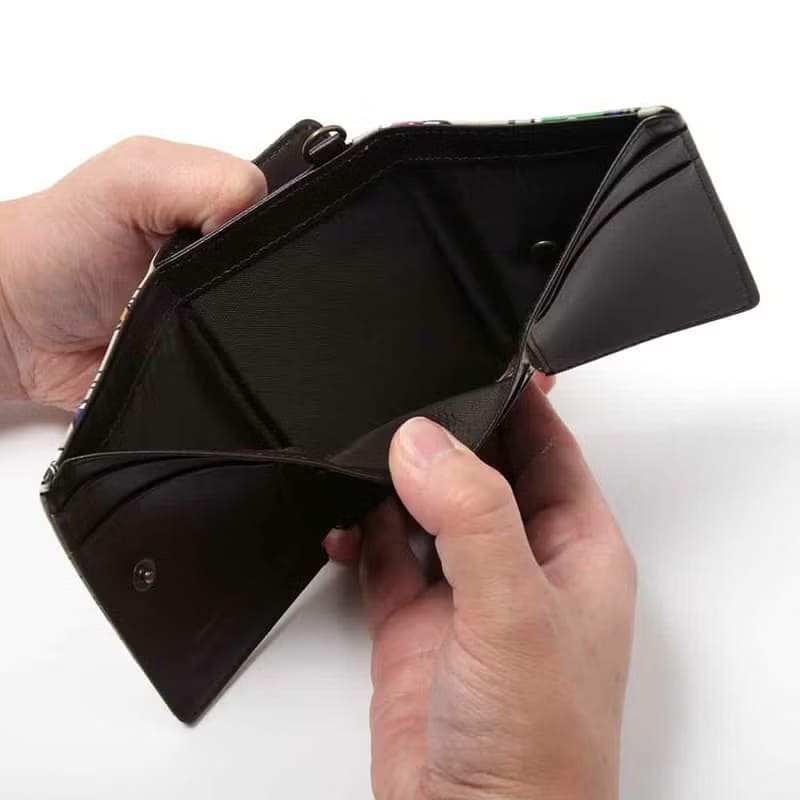 本革仕様のコンパクトな三つ折り財布