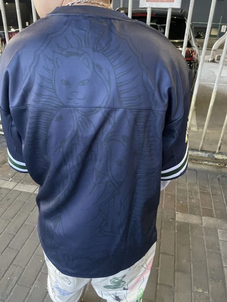 合わせたアイテムも新作のフットボールシャツ!