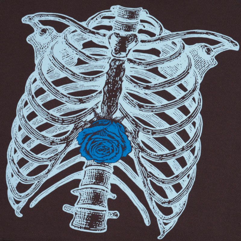 青い薔薇と骨のミスマッチなグラフィックが目を引く一着。br>