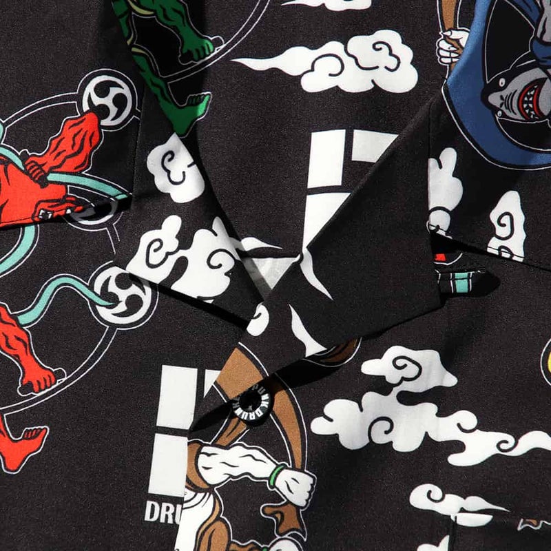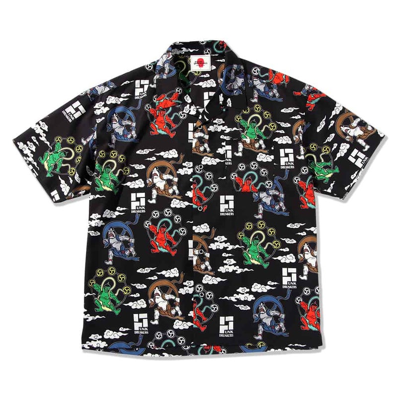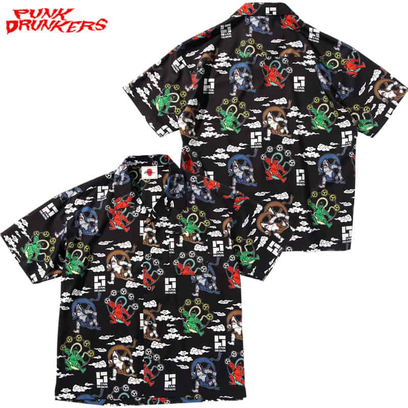 6. パンクドランカーズ PUNK DRUNKERS 風神雷神アロハシャツ(BLACK)