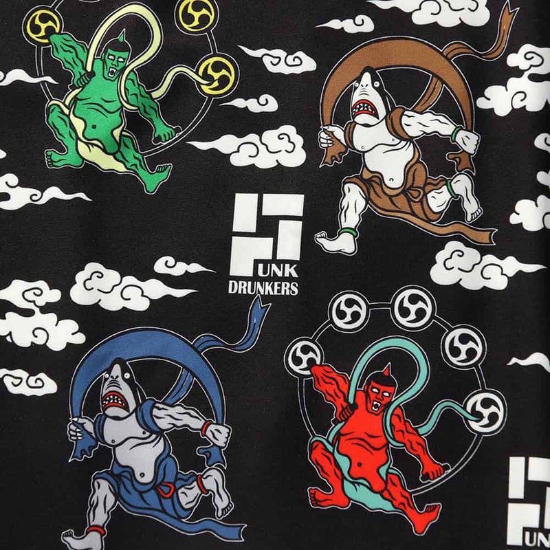 4. パンクドランカーズ PUNK DRUNKERS 風神雷神アロハシャツ(BLACK)